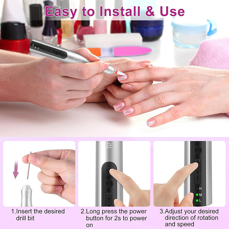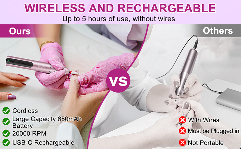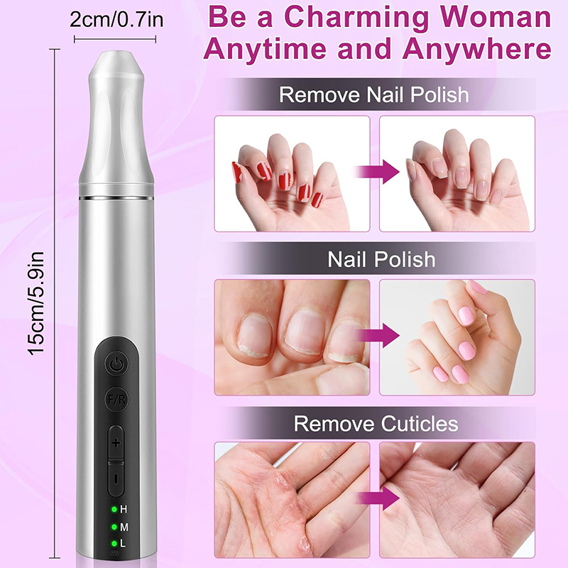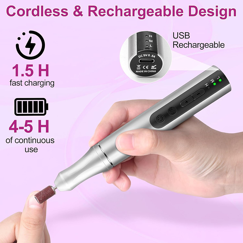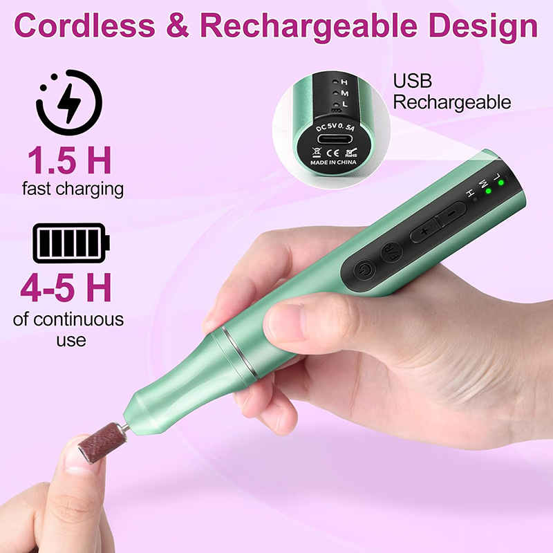دریل ناخن برای ناخن های اکریلیک به گونه ای طراحی شده است که سبک وزن (85 گرم) است و می تواند در کیف یا جیب لباس شما قرار گیرد. همچنین دارای یک کابل شارژ USB است که میتوان آن را به راحتی به هر دستگاه USB برای شارژ وصل کرد و به شما این امکان را میدهد تا در هر زمان و هر مکان از مراقبت از ناخن خود لذت ببرید.