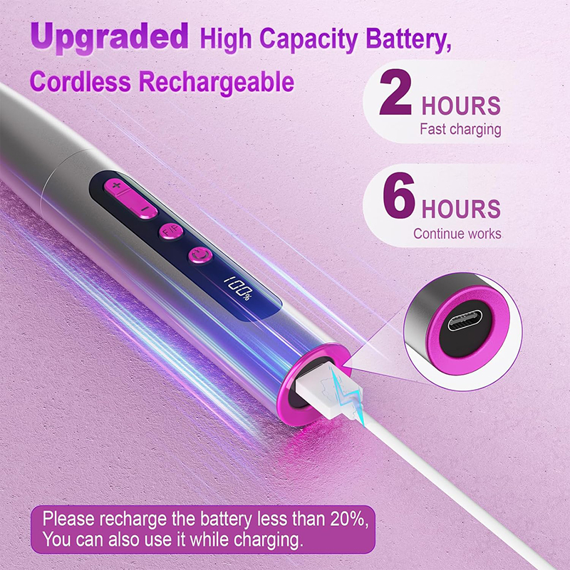 دریل برقی میخکوب باتری با ظرفیت بالا ارتقا یافته، 2 ساعت شارژ سریع و 6 ساعت ادامه کار. فایل ناخن برقی برای آداپتور برق USB، لپ تاپ، برق موبایل و ... شما مناسب است. اگر قدرت دریل میخ بی سیم کمتر از 20 درصد است، می توانید در حین شارژ نیز از آن استفاده کنید.