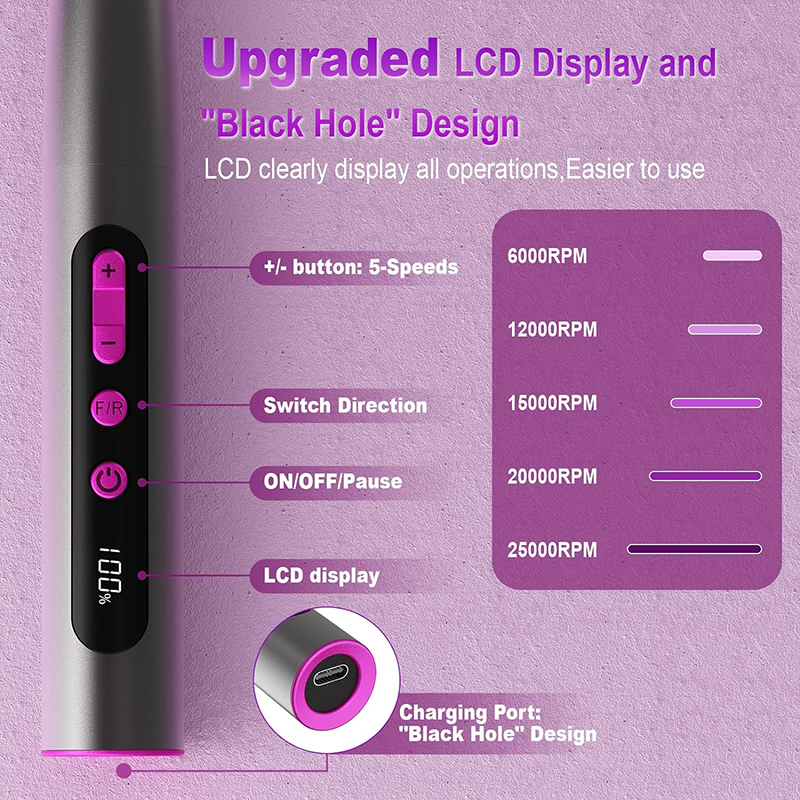 بدنه آلیاژ آلومینیوم با موتور با کیفیت بالا، چرخش حرفه ای میخ دریل با سرعت بالا و اتلاف گرمای کارآمد در همان زمان. موتور با تمرکز بالا، توان خروجی قوی و یکنواخت، لرزش مداوم کم، صدای کم و حرارت کم، مراقبت از ناخن شما را کارآمدتر و راحت تر می کند.