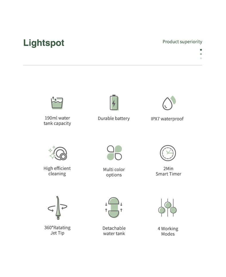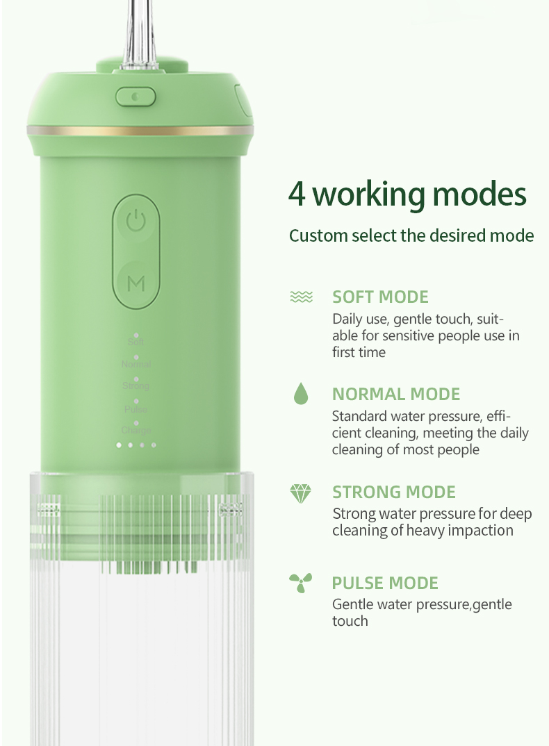 تمیز کردن عمیق با فشار قوی: فلوسر آب جدیدترین تکنیک پالس را برای ارائه 4 حالت با محدوده فشار بین 30 تا 90 Psi و ضربان نبض 1400 تا 1800 بار در دقیقه به کار میگیرد تا آب با شدت بالا را ارائه دهد که 99.99 درصد از آن را پاک میکند. کشیدگی دندان، به طور خاص برای پریودنتیت، بریس طراحی شده است.
