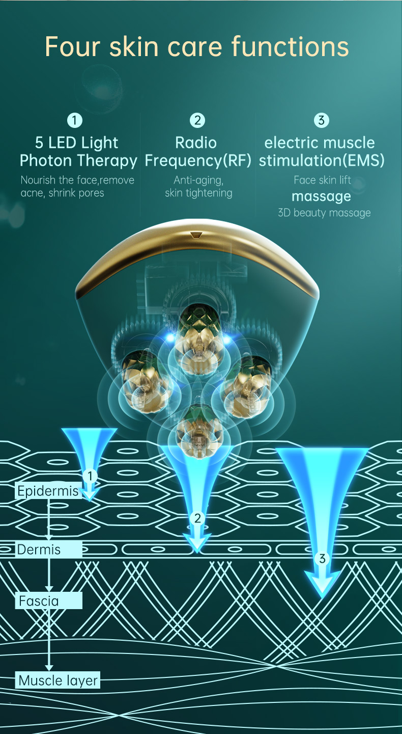 2. ماساژ+EMS+RF چند منظوره، 3 سرعت و شدت قابل تنظیم