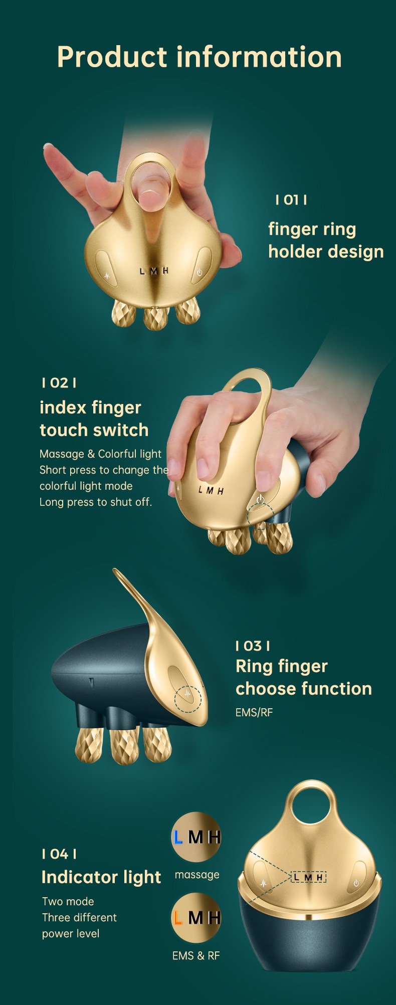 ماساژ صورت با فرکانس بالا - در حالتهای پاکسازی، نفوذ، لیفتینگ و مراقبت از چشم، احساس ارتعاش با فرکانس بالا برای کمک به تحریک حیات سلولی و بهبود گردش خون. بنابراین در واقع یک ماساژور صورت نیز هست.