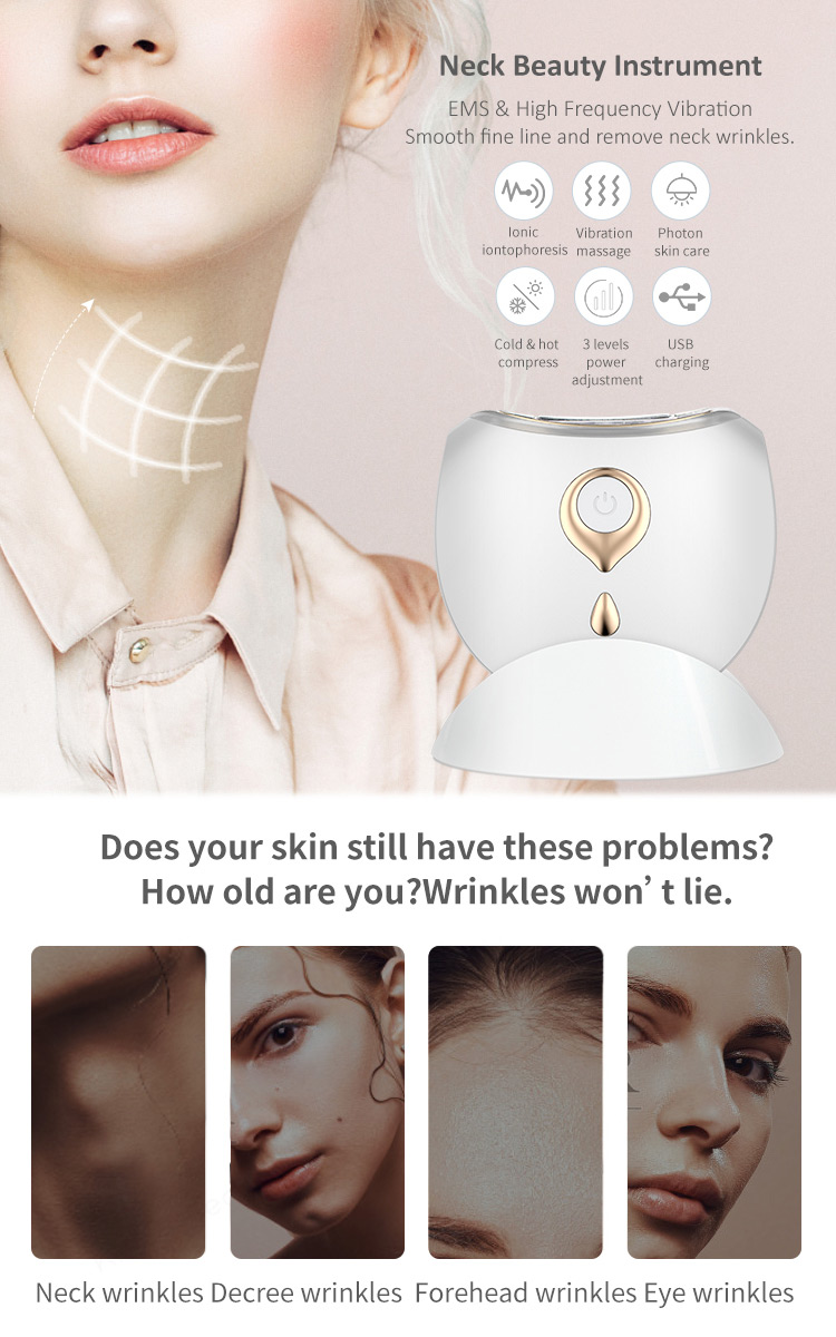 EMS و لرزش فرکانس بالا، خطوط ریز را صاف می کند و چین و چروک های گردن را از بین می برد
