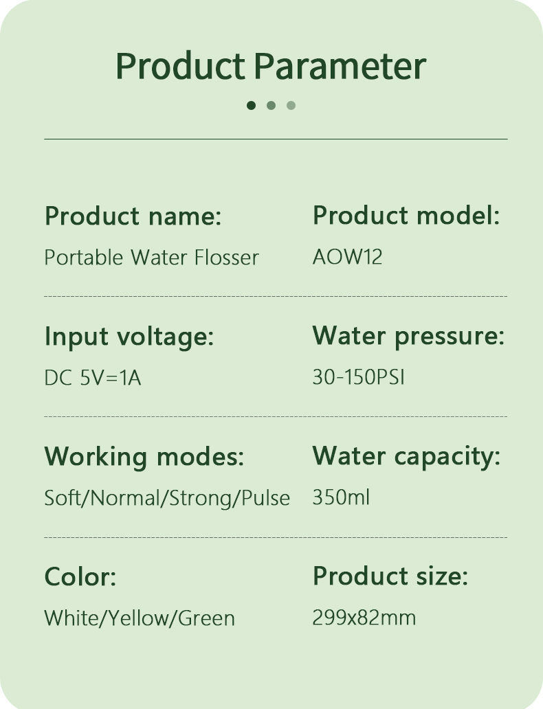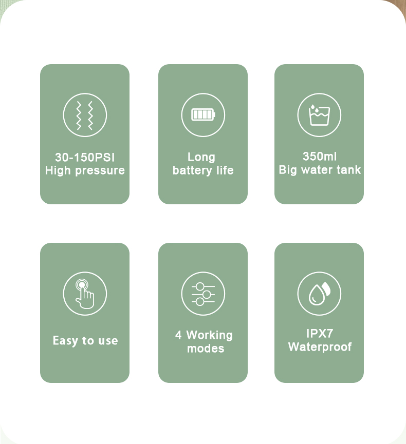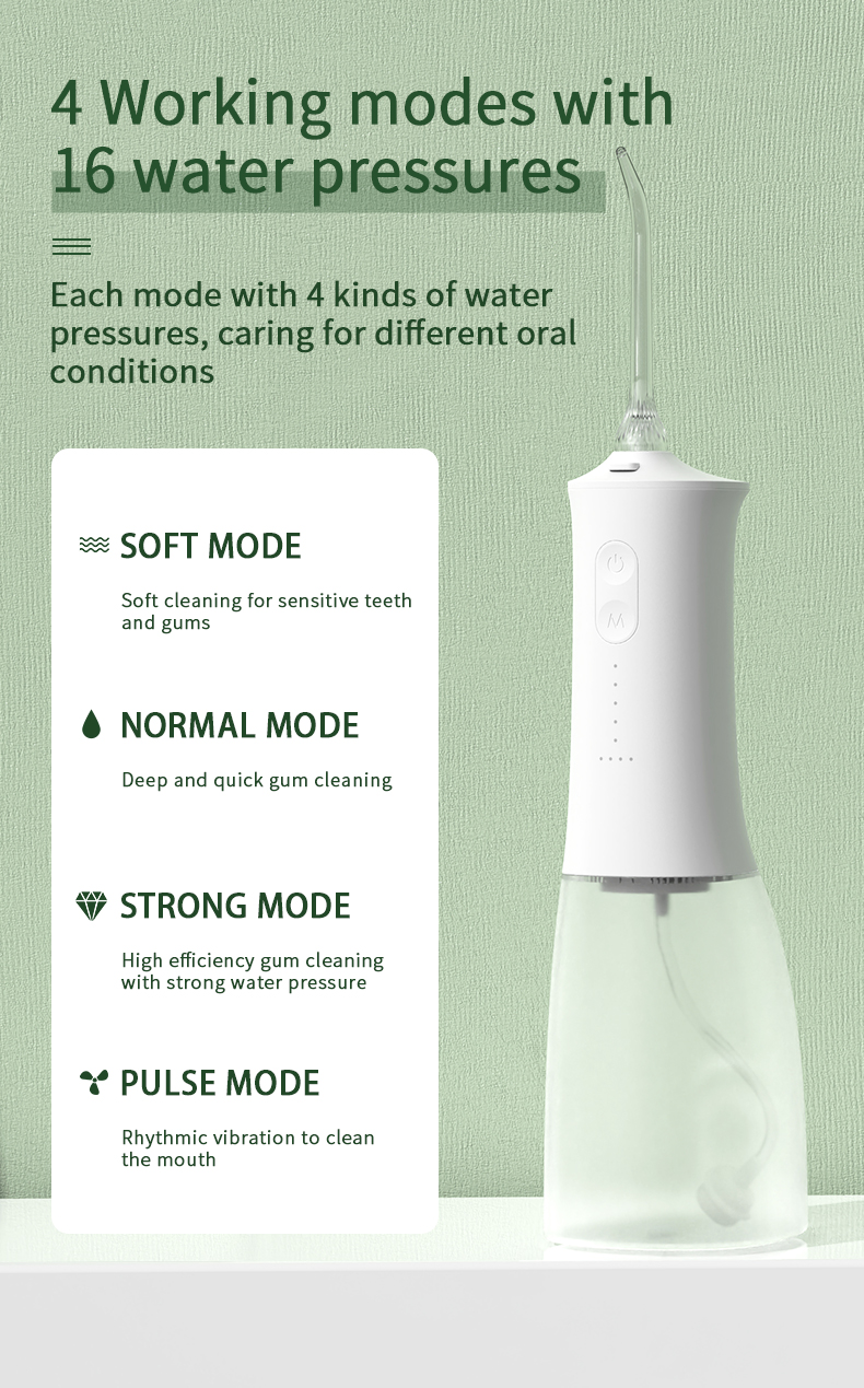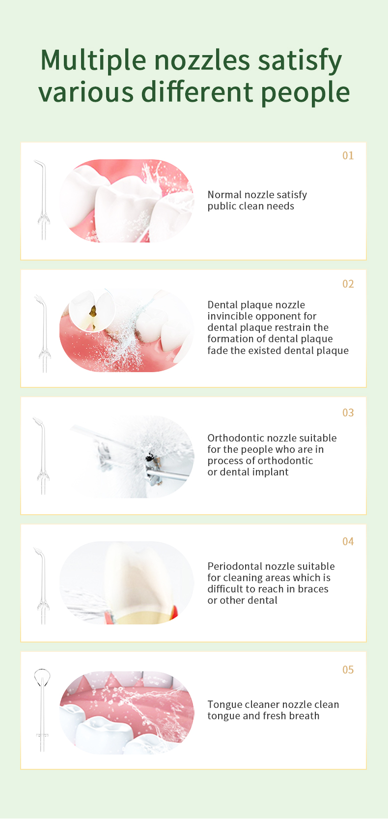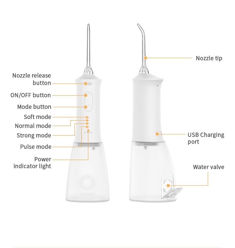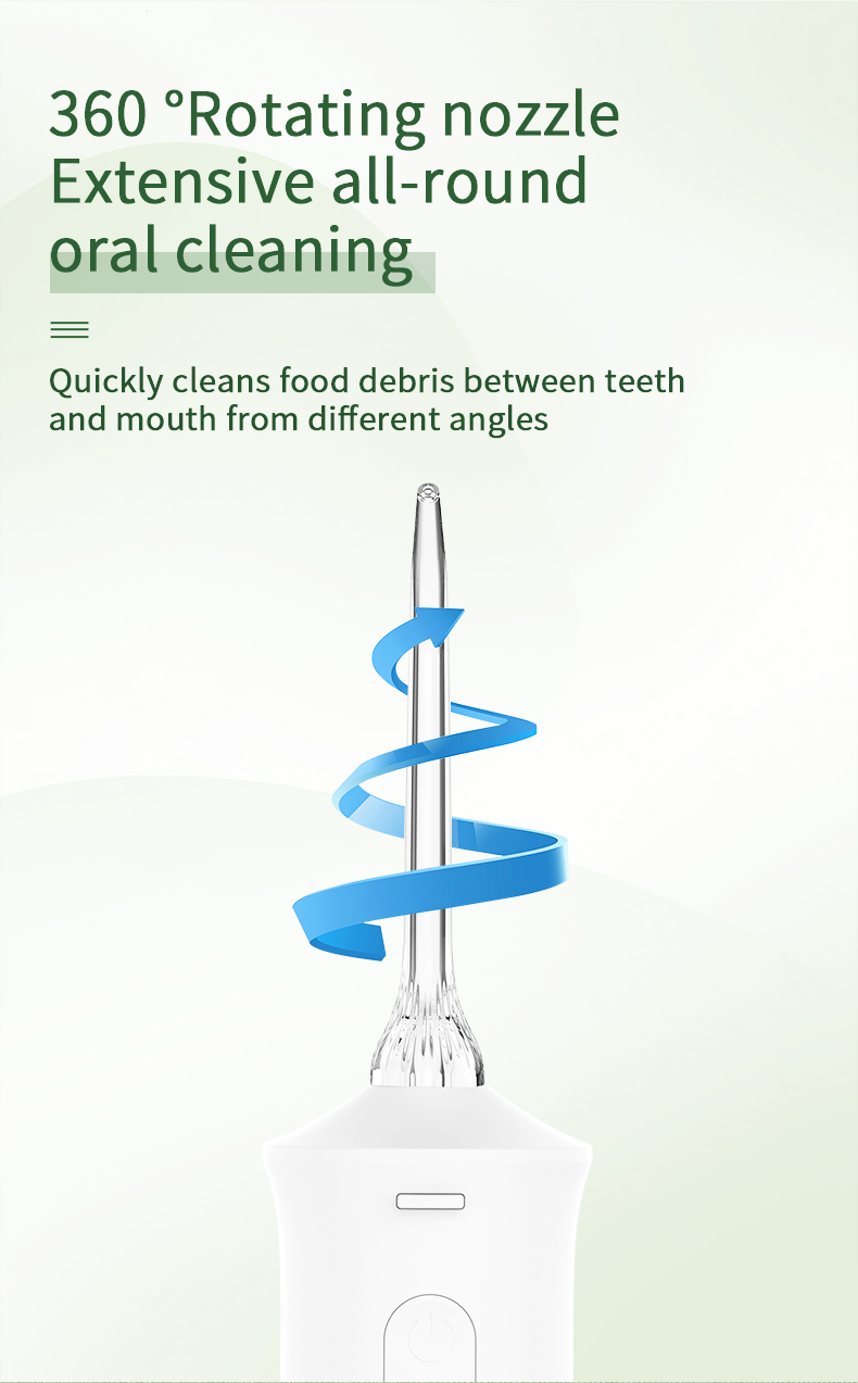 این پیک دندانی آب پالسهای فشار آب بالا را با سرعت 1400 تا 1800 بار در دقیقه ارسال میکند و به طور موثر 99.9 درصد از پلاکهای دندانی را برای تمیز کردن عمیق دندانها از بین میبرد. این پیک دندانی با آب لثه ها را ماساژ می دهد، گردش خون را بهبود می بخشد و مشکلات دهان مانند بوی بد دهان، دندان های ارتودنسی را برطرف می کند.