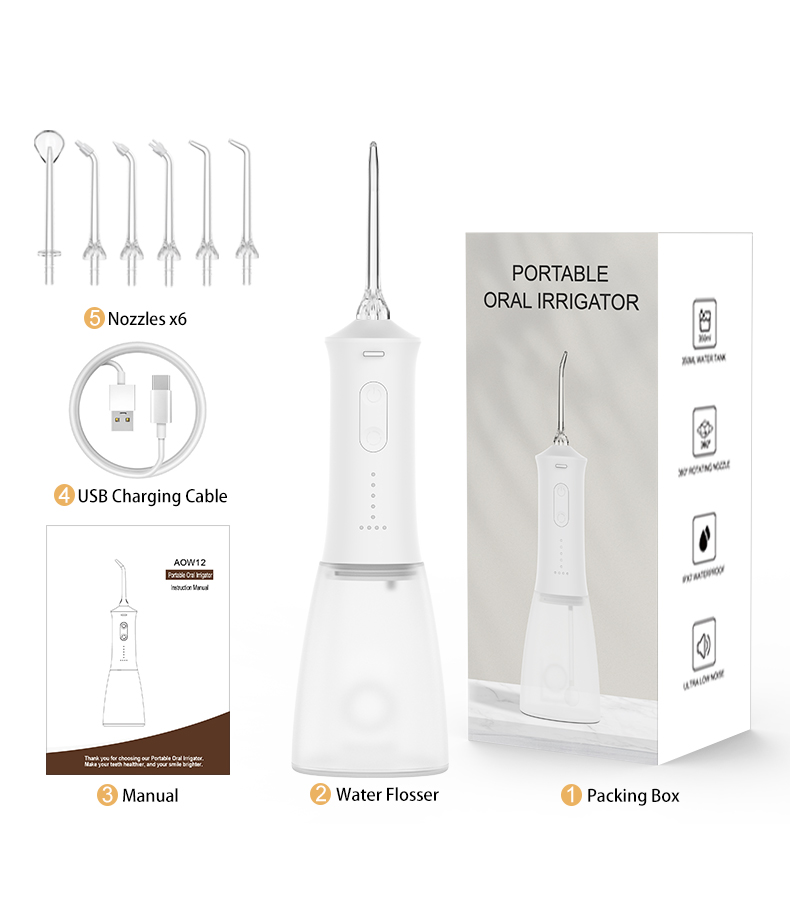 بسته بندی: 1 عدد بدنه فلوسر آب + 5 عدد نکات + 1 عدد کابل USB + 1 عدد دفترچه راهنمای کاربر + 1 عدد جعبه هدیه.